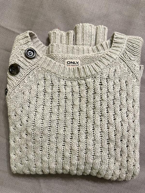 Вʼязаний светр, світло сірий, розмір с-м,ношу л- тіснуватий. Ґудзики активні. Декорований налокітниками, теплий. До тіла - приємний. Має розрізи по боках, підійде навіть під спідницю.