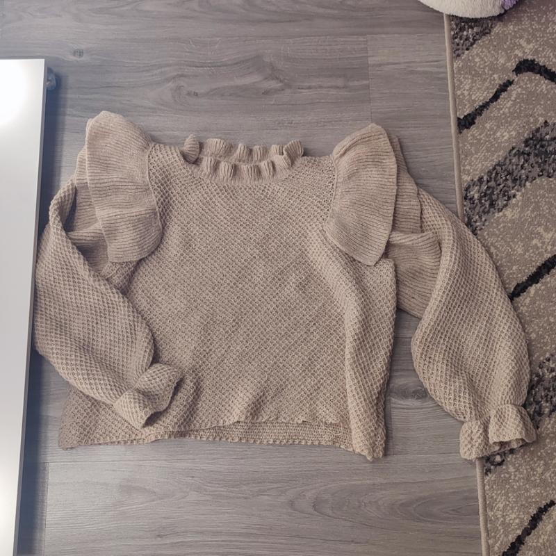 Красивый женский вязаный свитер, но есть диффекты фото додая, на обоих рукавах, и снизу нить извлекалась возможно кто сможет убрать дифекты размер L
