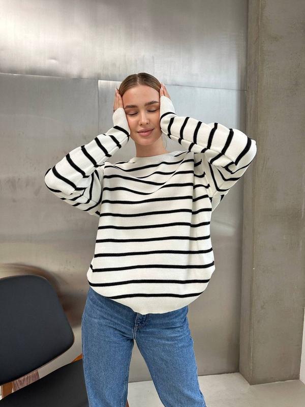 ▪️Светр ▪️Артикул: G789/3090 ▪️Розмiр: 42-46 ▪️Тканина: ▫️машина в’язка ▫️70%вовна, 30%акрил ▪️Колір: ▫️лаванда, беж ▫️малина, червоний ▫️синій, меланж, чорний ▫️білий в чорну смужку ▫️білий в зелену смужку Код11