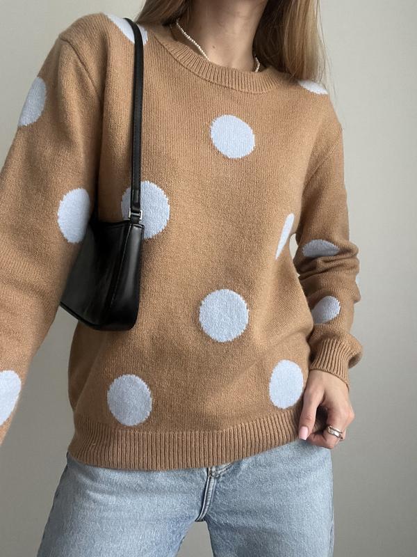Бежевий светр в голубий горох