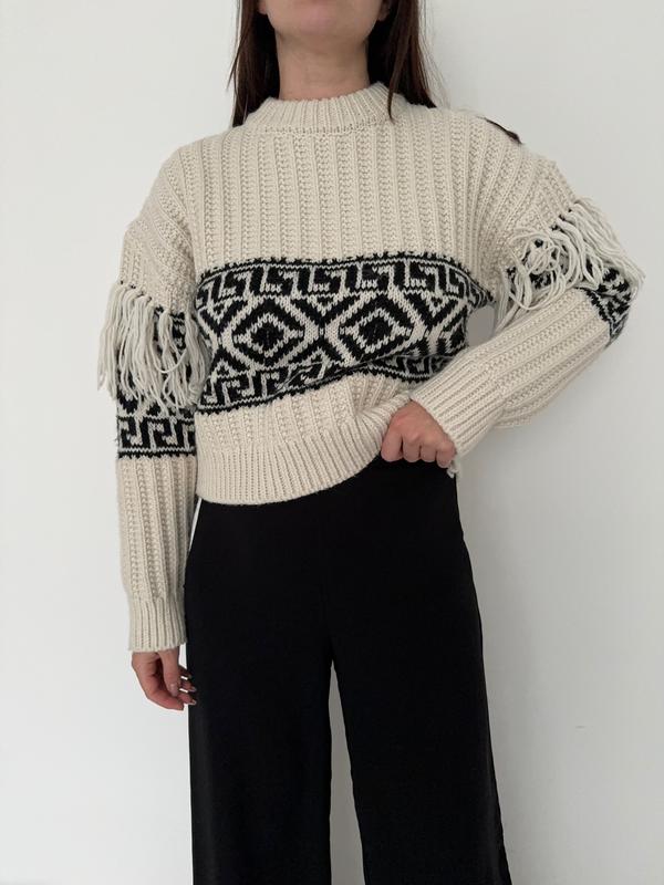 Теплий светр H&M З нових колекцій Стан 5+ Матеріал 50% поліестер, 45% акрил, 5% вовна Розмір XS 615 грн Довжина: 51 см Напівобхват грудей: 47 см Рукав з плечем: 66 см