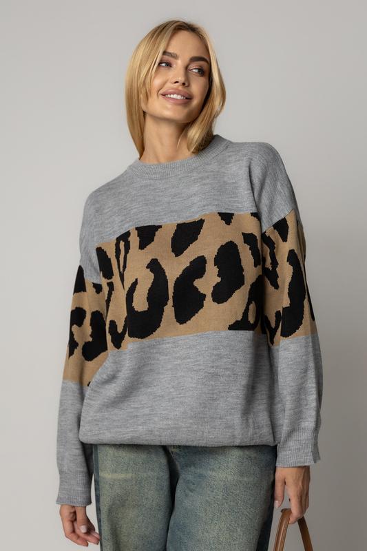 Жіночий в'язаний джемпер з леопардовим візерунком - сірий цвет, one size (є розміри)