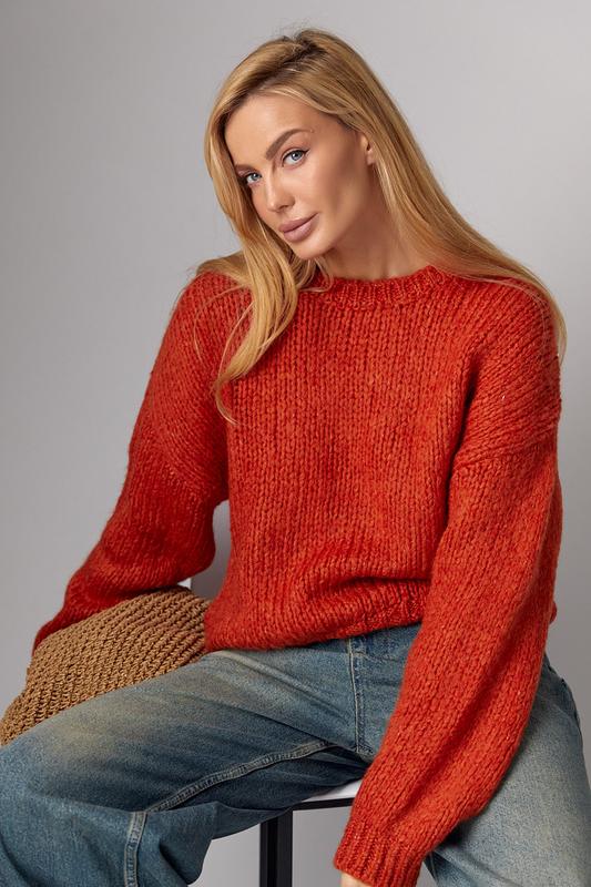 Жіноча вкорочена кофта крупної в'язки - теракотовий цвет, one size (є розміри)