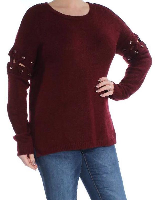 Свитер размером S, лучше М, в составе акрил, средней плотности, прямого кроя с боковыми разрезами, имитация отцепного рукава, длина 63см., полуобхват груди 53см., длина рукава от горловины 75см. В идеальном состоянии без дефектов.