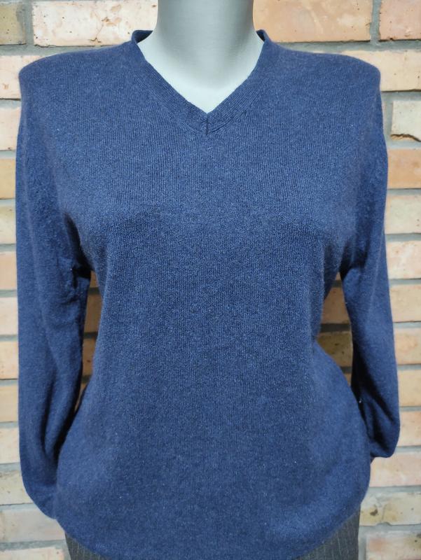 Стильний брендовий джемпер, светр. Може бути як чоловічий та жіночий. Тонкий, мягкий трикотаж із натурального шовку та кашеміру. Трішки тягнеться. Колір типу "джинс". Стан ідеальний. Розмір вказано 48/50 орієнтуйтеся на заміри довжина 67 ОГ 102 Рукав 63 плечі 41
