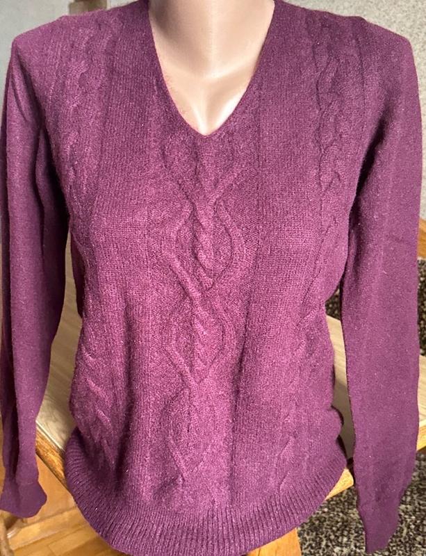 хорошего качества приятный и нежный на ощупь 100%-кашемир Очень добротный свитерик, хорошего качества приятное на ощупь выполнен из натурального, высококачественного кашемира, это изысканный, шикарный, ультрамодный, утонченный и, по праву, самый дорогой материал. Не случайно его называют «королевская пряжа», невероятно мягкий, теплый и изысканно красивый.нажаль фото не передает подлинность цвета....Стан идеальный (новый лишь отсутствует бирка)!! 💫РАЗМЕР: Замеры ПОГ 44 см Длина рукава 61 см Длина свитера 62 см