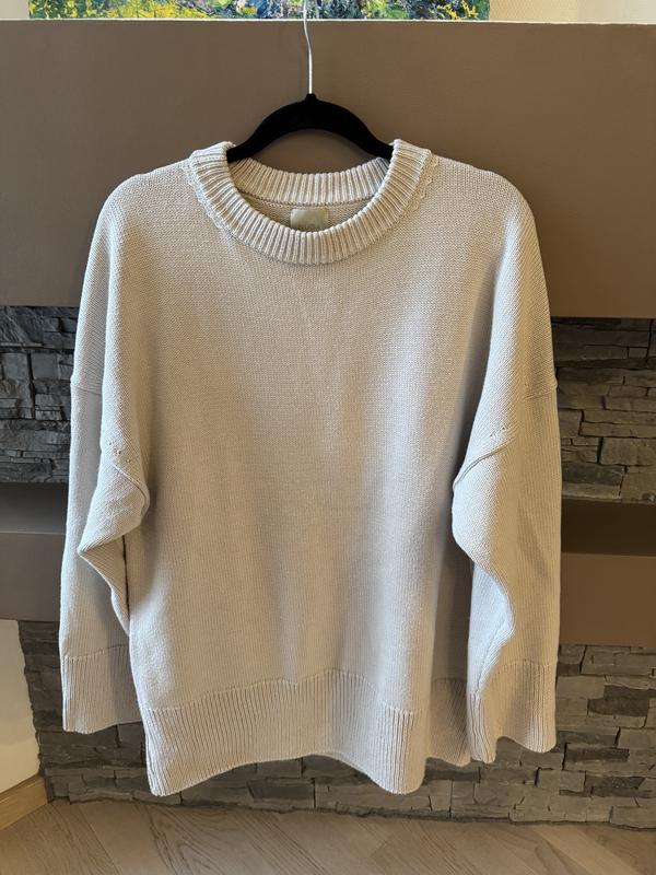 Бежевий подовжений светр Nuga 80% cotton 20% pls one size / unisex Як сидить на другому фото Завдяки бавовні светр приємний, не колючий і не утворює катушок. Завдяки поліестеру стабільний і зносостійкий, має щільну структуру і добре тримає форму.