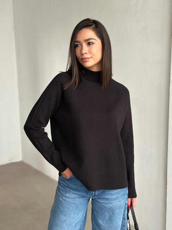 Свитер женский в широкий рубчик. Арт. 46064, 46063, 46062, 46060, 46057, 46054, ▪️ материал: коттон -70%, вискоза - 25%, эластан - 5% ▪️ цвет: черный, молочный, бежевый, голубой, серый, зеленый ▪️ размеры: 42-46 (универсальный) Ориентировочные замеры готового изделия: ОГ – 118-124 см, ОТ – 112-126 см, длина спереди – 59 см, длина сзади – 66 см, длина рукава – 66 см.
