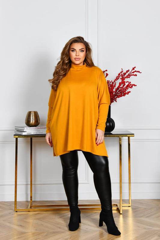 НОВИНКА💥💥💥 Туніка Код 3769 Ціна 900 грн. Тканина: Ангора. Кольори: гірчичний, бордо, фісташка , червоний. Розміри: 52-58, 64-66. Довжина туніки: 83, 85 см. Довжина рукава: 74, 75 см. Обхват рукава: 58, 62 см. Заміри готового виробу: 52-58 ОГ 182 ОТ 172 ОС 164 64-66 ОГ 198 ОТ 188 ОС 180 Неймовірно стильна туніка прямого силуету із в‘язаного полотна (розтяжність висока).Туніка повинна бути дуже вільною на фігурі, така модель. Горловина оброблена комірцем-стійкою. Лінія плеча спущена, від ліктя рукав завужений. Застібок, кишень немає філат