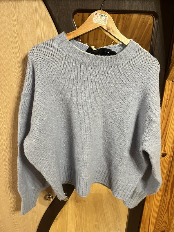 Кофтинка нарядна для пишних форм 54-56-58розмір вязана голубенька ззаду на завʼязку бант Довжина кофтини 60см ОГ 130 ОТ 125 Довжина рукава 55см