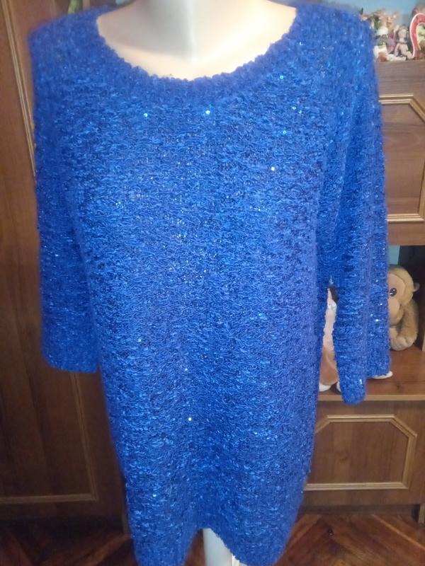Жіночий светер в дуже хорошому стані,без жодних плям і дифектів,рукав 3/4 дивіться інші мої оголошення. довжина 69см. пол.обх. 54см. довж.внут.рукава 32см.
