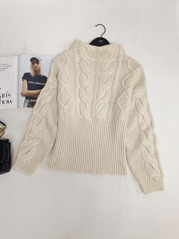 🌿бежевий светр від Zara красивої в'язки, тягнеться, містить шерсть 8% Розмір:М Заміри:ПО грудей 46 см, довжина 62 см, рукав від горловини 75 см