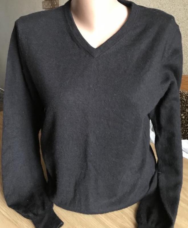 гарної якості приємний на дотик 100% вовна Дуже добротний светрик, гарної якості приємне на дотик м'який ,відтінок чорний❤ Фасон вільний теплий, зовсім не колючий Заміри ПОГ47 см.,довжина рукава 63см .,довжина кофта 62см • розмір М Тканина — м'яка, дуже тепла тканина саржевого переплетення з вовни мериносів або козячого пуху. Унікальний, дорогий матеріал, який стане гідною інвестицією у власний імідж.