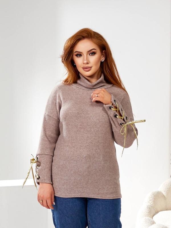 СВЕТРИК З ВИСОКИМ ГОРЛОМ 46-48, 50-52 #111 ✨ Неймовірний светрик вільного крою з високою горловиною та оригінальними рукавами ✨ Високе горло та стильний шнур на манжетах рукавів, додають жіночності, функціоналу та створюють особливий шарм ✨ Светр чудово сідає по фігурі, добре тягнеться і неймовірно ніжний та приємний на дотик ✨ Тканина - ніжна турецька ангора