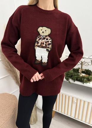Светр із зображенням ведмедика на грудях. Ведмедик одягнений у стильний костюм і черевики, що додає оригінальності образу. Светр має класичний крій, довгі рукави та округлу горловину. Ідеально підходить для створення затишного та модного образу. Виробник: Туреччина Склад: 70% акрил, 30%шерсть Розмір: 42-46 Колір: сірий, беж, бардо,синий Ціна 1050грн Виміри: Довжина 69см Обг 106-120см Рукав від шиї 67см №5004 адел