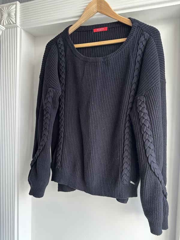 Стильний чорний светр GUESS з плетеними деталями на рукавах. Комфортний та універсальний вибір для прохолодної погоди. Розмір - XL (можна й на L) Стан - ідеальний