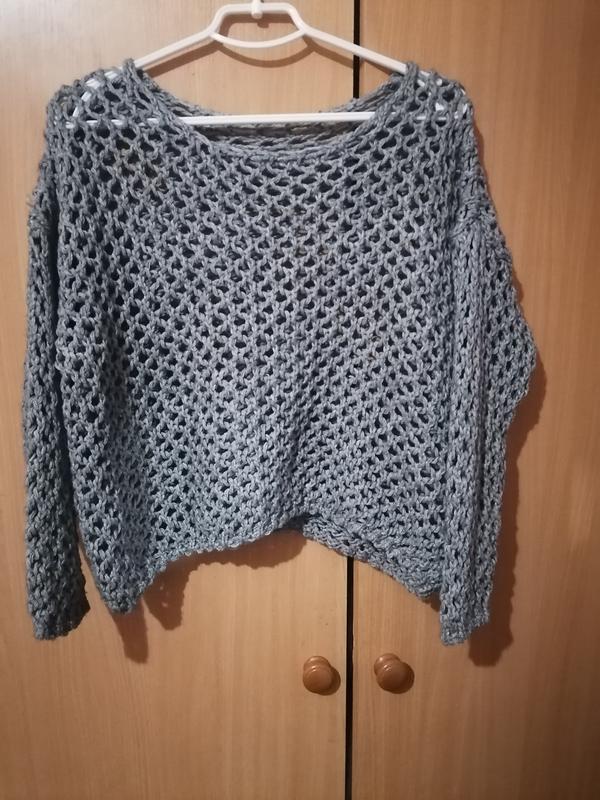 Свитер с сетчатой вязкой. Без пiдкладки. ПОП 64 см, ПОГ 64 см, ПОТ 56 см, довжина 55 см, рукав 45 см. Матерiал шесть.