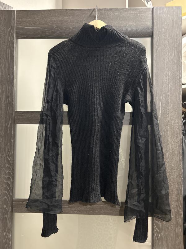 Гольф з шикарними рукавами, єтикеток немає , але це вовна 💯. Довжина 60, рукава 67, ширина 35