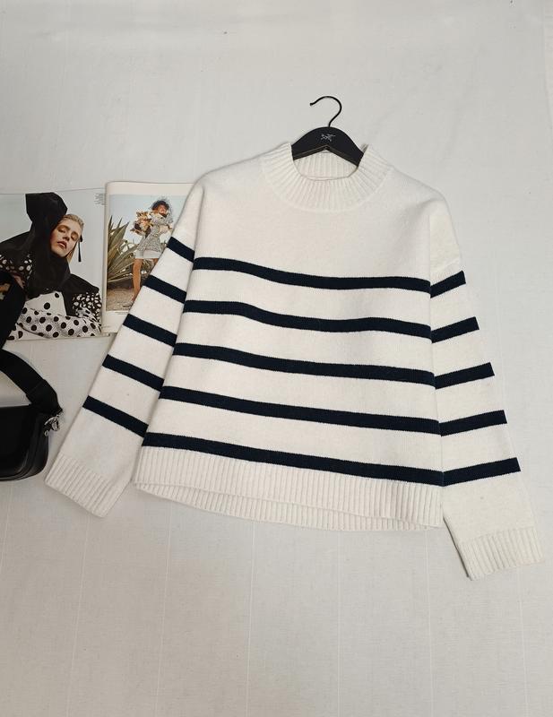 🌿свитер в полоску H&M свободного кроя, ткань акрил, полиэстр и 5% альпака Размер:S Замеры:ПО груди 66 см, длина 58 см, рукав от горловины 72 см