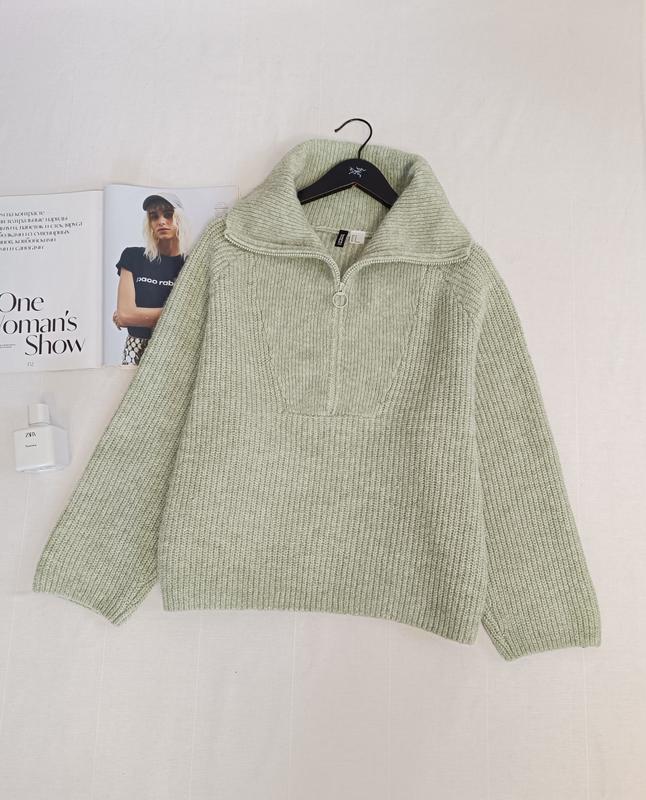 🌿зелений светр з замоком Divided вільного крою, м'який і теплий, в складі поліестр, акрил і 3% шерсть Розмір:М Заміри:ПО грудей 63 см, довжина 60 см, рукав від горловини 66 см