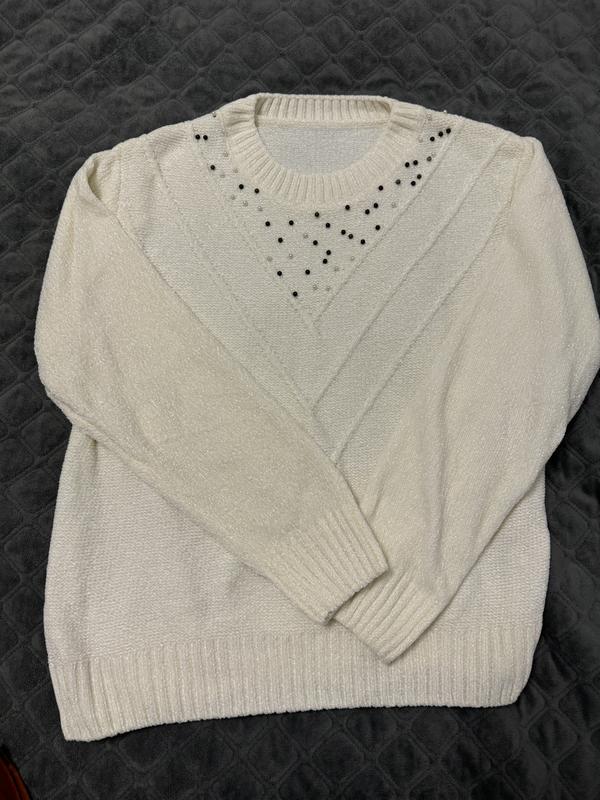 Біло- молочний светр. Стан ідеальний. Дуже ніжна тканина, злегка переливається, добре тягнеться, приємна до тіла.Буде на м до xl.