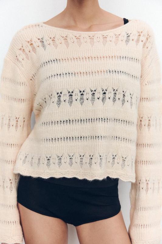 Ціна 1350 Светр з м'якої тканини з ефектом в'язання гачком. Горловина човник і довгі рукави. Антрацит сірий | 1131/999/807