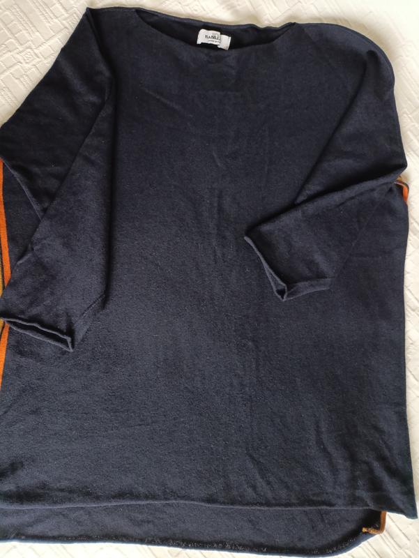 Тёмно-синий,с. боков две полоски,вязка по горизонтали, оверсайз.