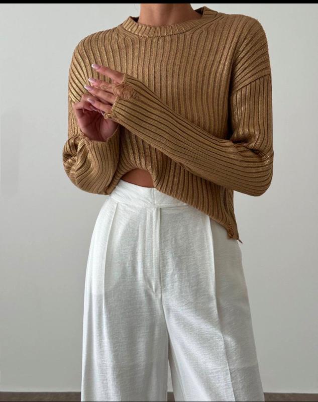 Жіночий светр із рваним декором▫️ ▫️светр із рваним декором – це сміливий вибір для тих, хто хоче надати образу трохи розкутості та стилю. ▫️розмір : one size ▫️вартість : 🏷️910 Кольори : срібло , золото ✨ Тканина: машинна в’язка Виробник: Туреччина 🇹🇷 🔎Заміри : Довжина : 50 см Рукав : від горловини 81 см , білий 1-н , 76 см ПОГ : 51 см для замовлення пишіть у direct 💌