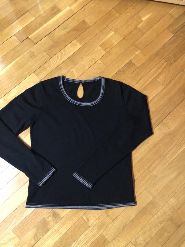 Кофточка, черного цвета, со светлой окантовкой, ширина под руками-46 см, длина рукава- 62 см, длина кофты- 56 см, тонкая шерсть