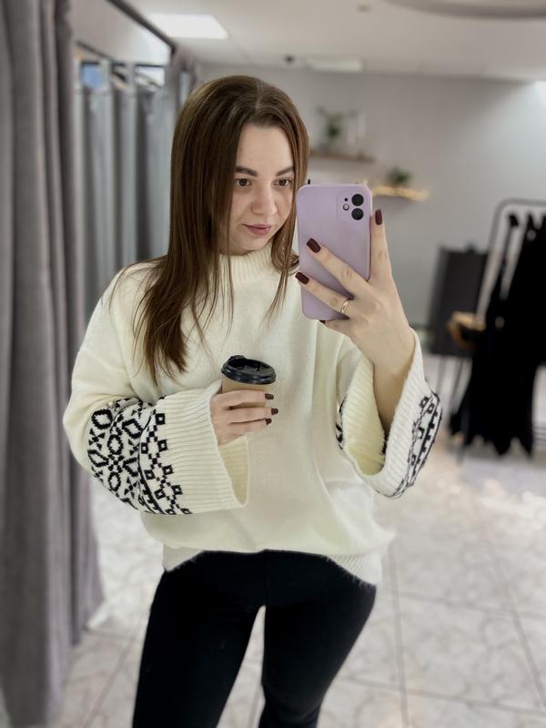 Дуже теплий та комфортний светр Колір - молоко На рукавах орнамент Розмір дуже універсальний