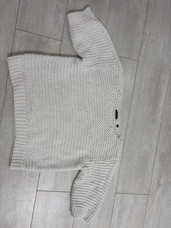 Жіночий светр білого кольору в крупну сітку три чверті рукава.