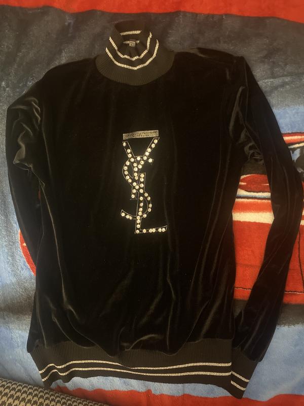 Кофта с горловиной под YSL с камнями на груди в размере С состояние идеал , материал под велюр , цвет чорний!