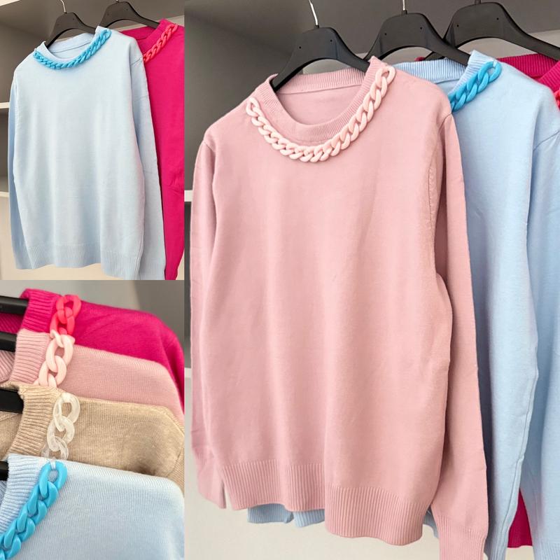 Розпродаж ‼️Ціна 350грн🔥🔥🔥 Якісні мʼякенькі кашемірові кофти Кольори: малиновий, блакитний, бежевий, пудра🧡🩵💜🩷 Прикрасу можна зняти😍 В універсальному розмірі. ПОГ 55, рукав 67, довжина 58см. Тканина тягнеться.