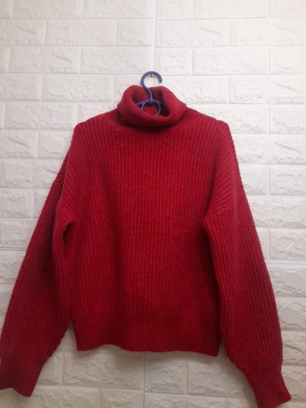 теплий гольф з опущеними широкими рукавами,трендового кольору малинового вина