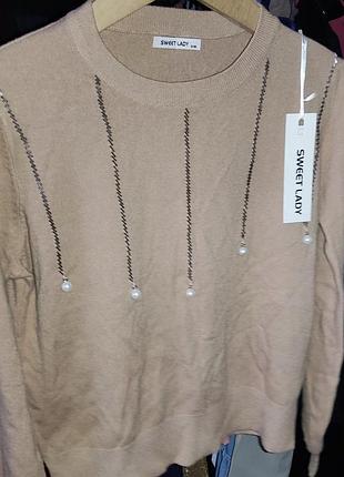 Новая женская кофточка с биркой декорированы бисером и с красивыми рукавами
