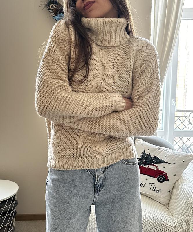 Светр вʼязаний, теплий у бежевому кольорі, універсальний. Стан ідеальний. Розмір ХS.
