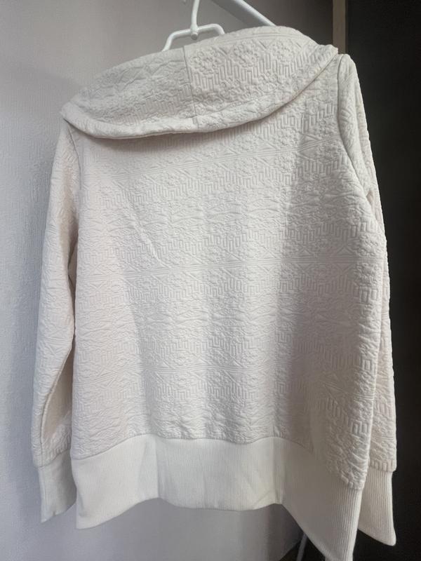 Светр з навіпкапюшоном білого кольору з шоколадними вставками. В ідеальному стані. Розвантажую гардероб. Продаю речі по мінімальним цінам. Якщо потрібні додаткові заміри чи фото пишіть 😉 ПОГ - 56см