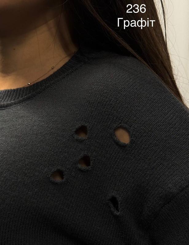 💙💛СВЕТР ЖІНОЧИЙ 💛💙 Артикул: 236 😍 Стильная моделька с имитацией рваного свитера. Свободная моделька с эластичной резинкой на манжетах. ✂️Материал: машинная вязка. 🌟Хорошего качества. 🇨🇳Страна производитель: Китай 🇨🇳 🏷 Размеры: универсальный 42-48. Параметры модели: 87-74-94 Рост 169см 📏📏📏Замеры: Длина изделия - 48 см. Длина рукава - 48 см. Ширина плечей - 53 см. НОГ - 53 см. Низ - 51 см. 🛍Минимальный заказ от 1 шт🛍 💵Цена 🔥🔥🔥 379 грн 💵Цена за упаковку (2 шт) 758 грн