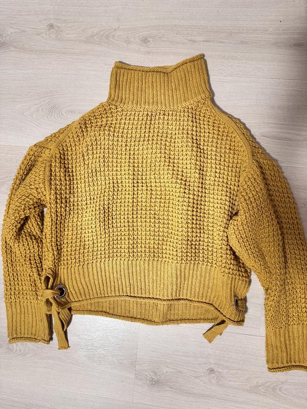 Свитер, горчкового цвета, с горловиной, свозного кроя, теплый