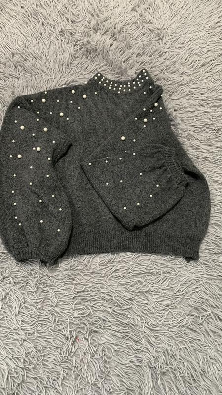 Свитер с горловиной, графитового оттенка. Украшен бусинками Длина от горловины - 50 см Длина рукава от горловины - 67