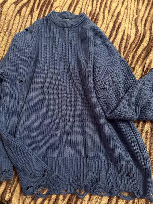 Кофтинка глибоко-синього кольору, в прикольні д рочки, oversize. Підійде як на S, так і на L.