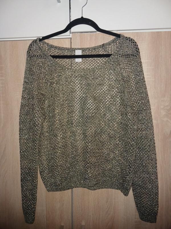 свитер свободного кроя , сетка с добавлением золотой нити