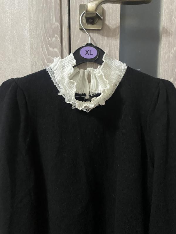 Чудовий, стильний светр відомого бренду NEXT, Колір чорний + обробка рукава та шиї кружевом ! Дуже гармонічно виглядає в діловому стилі! Мягкий , приємний на дотик, стан ідеальний. Без кашлатиків, затяжок . Розмір М Довжина 56 Ог-48, добре тягнеться Рукав -60+ кружево 5 За складом : акрил, поліестр, нейлон, дуже мʼякий і приємний до тіла