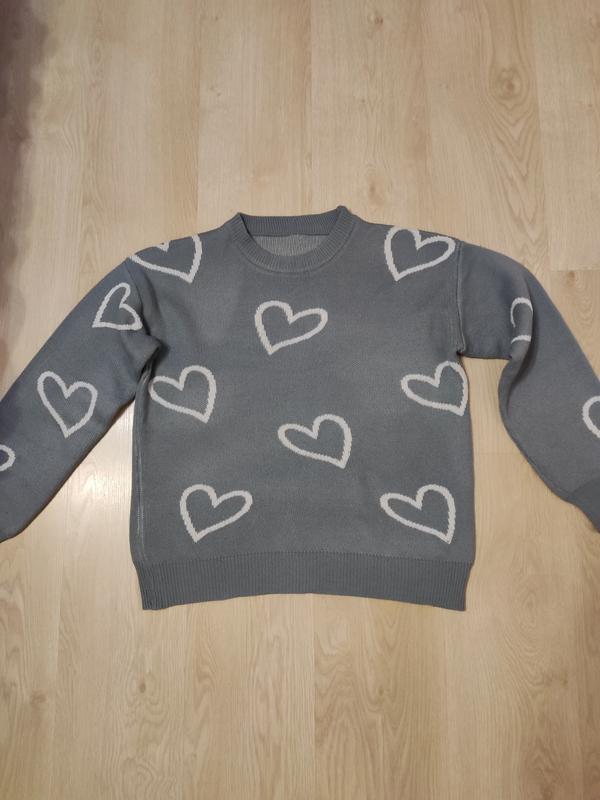 Красивый свитерик в сердечках 🩶🩶🩶 Длина 59 см; ширина 55 см Цвет приятный, нечто среднее между бирюзовым и серым. Заходите на страницу. Действует акция 1+1=3 🥳 Каждая третья вещь (дешевоздуша) в подарок.