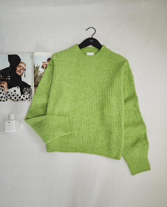 🌿зелений светр H&M крою оверсайз, м'який і легенький, містить шерсть 4% Розмір:S Заміри:ПО грудей 63 см, довжина 58 см, рукав від горловини 76 см