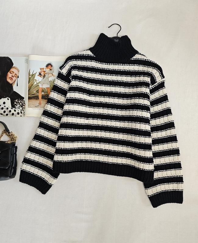 🌿светр в смужку H&M об'ємної в'язки, гарно тримає форму Розмір:М Заміри:ПО грудей 54 см, довжина 55 см, рукав від горловини 68 см