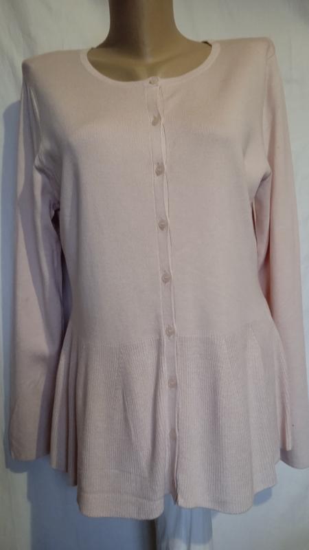 дуже гарна,нарядна кофта,ніжний рожевий колір,якісна тканина,оригінальний жіночний фасон,довжина68,пог -півобхват грудей між пахвами50,пояс півобхват46-47,бедра64-65,рукав64,тканина тягнеться,річ без дефектів