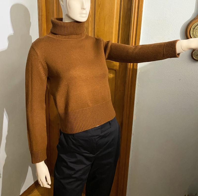 Елегантний дуже стильний светрик. Чудово тримає чітку пропорційно- геометричну форму. При цьому доволі мʼякий та щільний. Не тонкий. На бірці не видно складу. - впиралась фарба. Але за досвідом на дотик - більше 50% вовни. Те що це не тотальна синтетика, а гарний смесовий склад - однозначно. Якісний, доволі коштовний на вигляд трикотаж.((1))