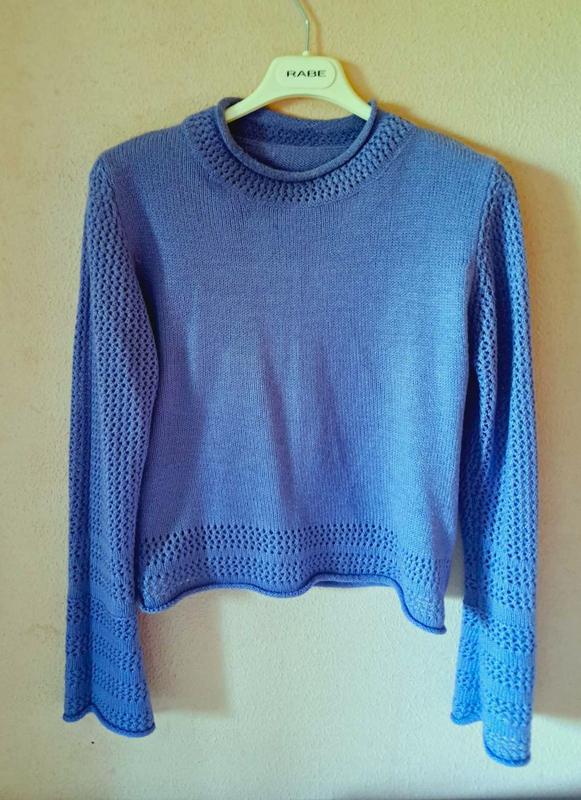 светрок акриловий прямого силуету, ажур навколо горловини, на рукавах і низом виробу щирина 40 см довжина 74 см довжина рукава 64 см дод. заміри та фото за запитом
