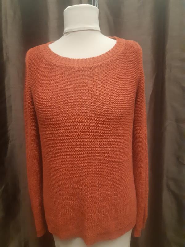 тоненький свитерик терракотового цвета. цвет как на 6.7 фото. длина 59, ширина 47 по низу, 50-пог, рукав 61 плечи 7 размер хs, подойдет также на s